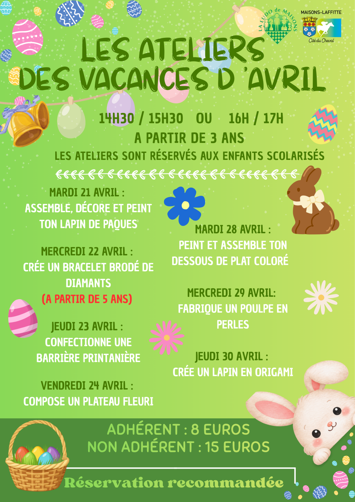 - Mardi 21 avril : Assemble, décore et peint ton lapin de Pâques Reste 5 places à 14h30 / Reste 5 places à 16h