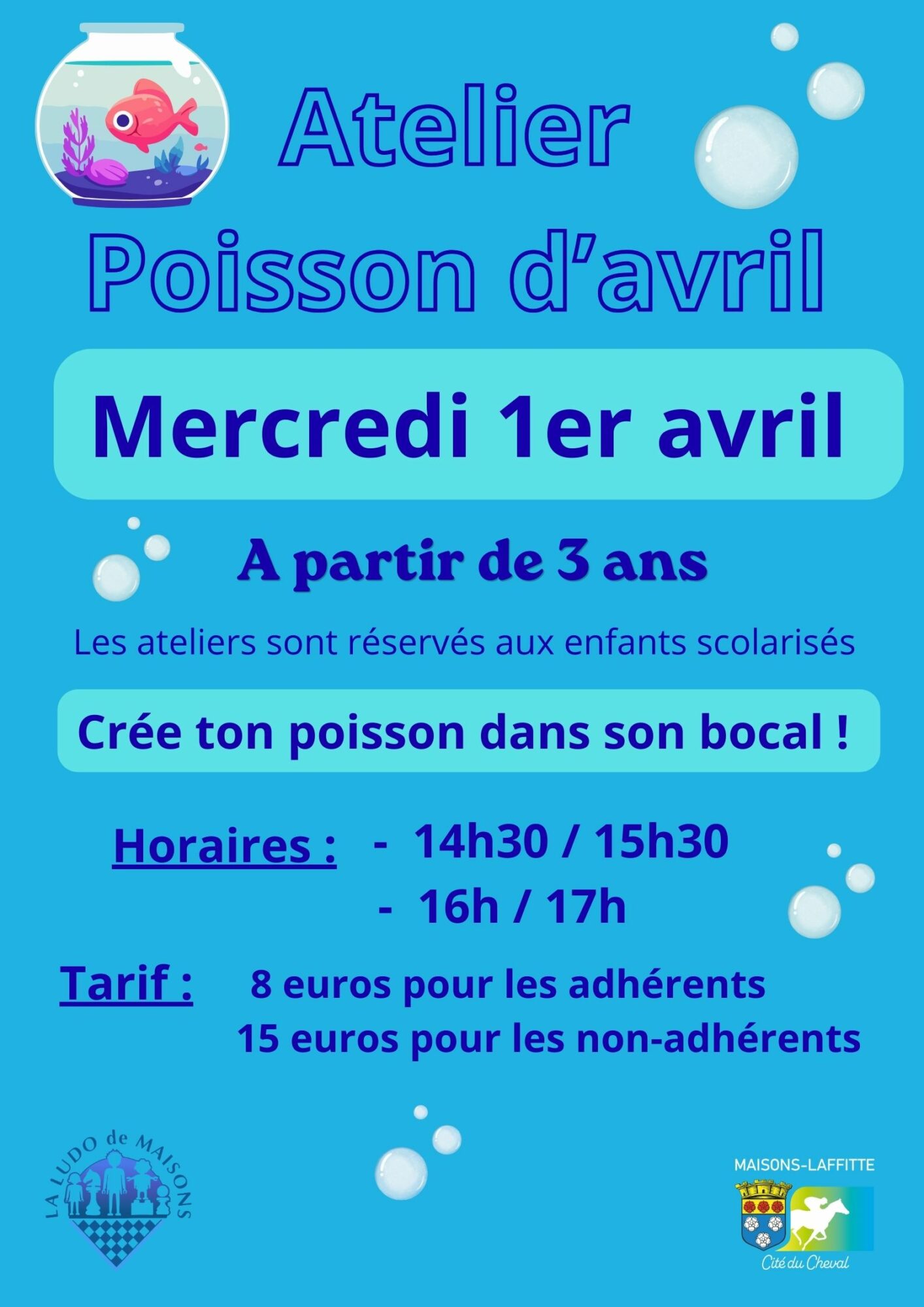 La Ludo de Maisons organise un atelier pour le Mercredi 1 er Avril à partir de 3 ans.